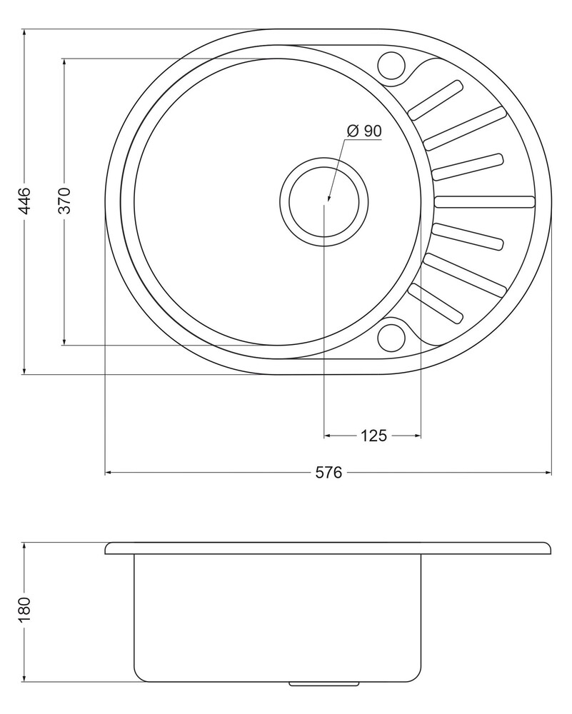 мойка, нержавеющая сталь, 576х446 мм, нержавеющая сталь сатин