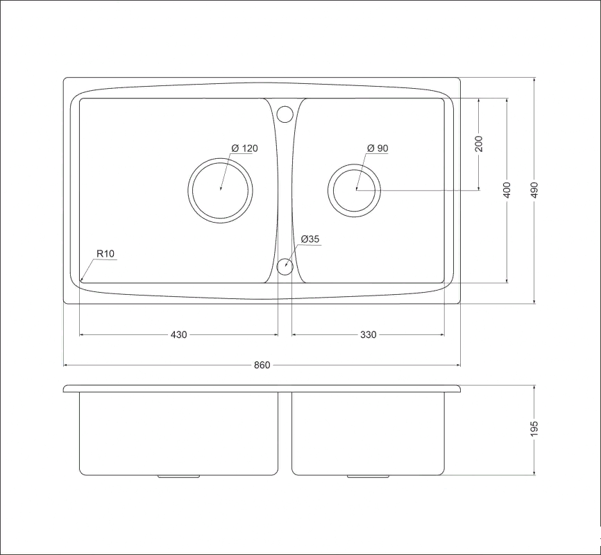 мойка, нержавеющая сталь, 860х490 мм, нержавеющая сталь сатин