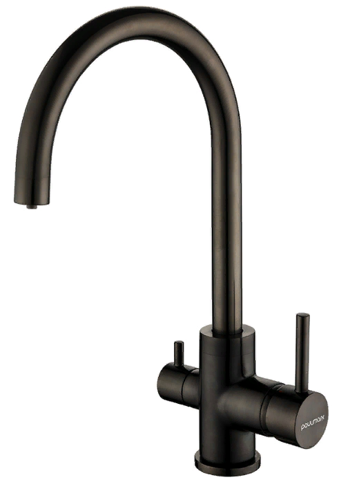 смеситель для кухни, латунь, дополнительный излив для фильтрованной воды, вороненая сталь