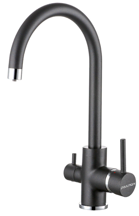 смеситель для кухни, латунь, дополнительный излив для фильтрованной воды, черный металлик