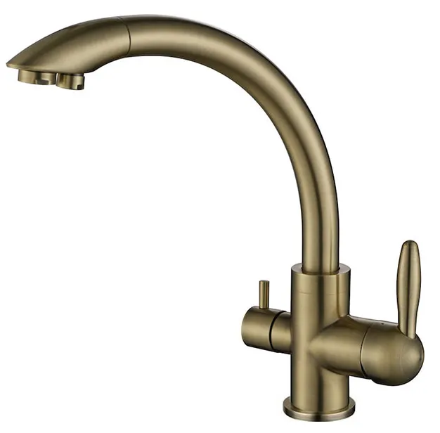 смеситель для кухни, латунь, дополнительный излив для фильтрованной воды, бронза