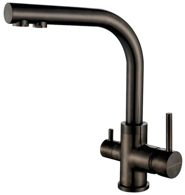 смеситель для кухни, латунь, дополнительный излив для фильтрованной воды, вороненая сталь