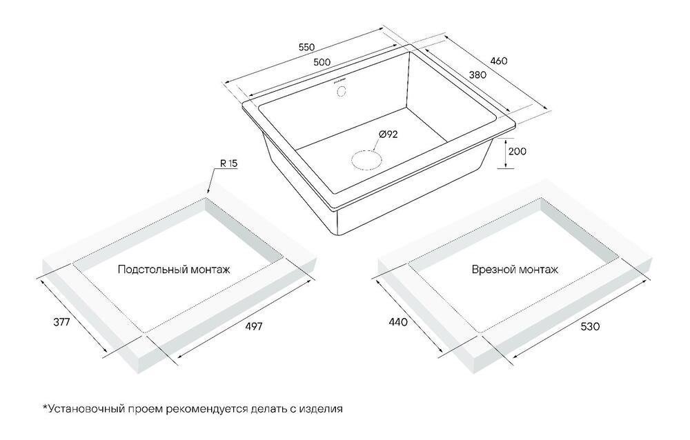 Расстояние от дна до верхней кромки чаши мойки. Оптимальная глубина — 15-18 см. Чем глубже мойка, тем меньше брызг попадет наружу.