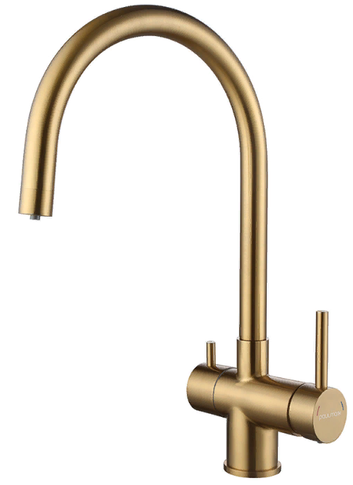 смеситель для кухни, нержавеющая сталь, дополнительный излив для фильтрованной воды, брашированное золото