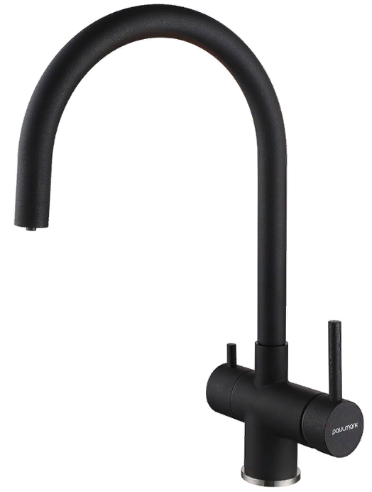 смеситель для кухни, нержавеющая сталь, дополнительный излив для фильтрованной воды, черный металлик