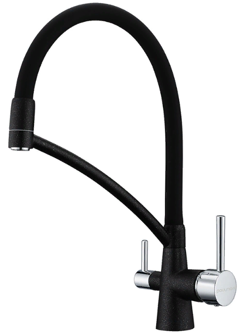 смеситель для кухни, латунь, дополнительный излив для фильтрованной воды, черный металлик