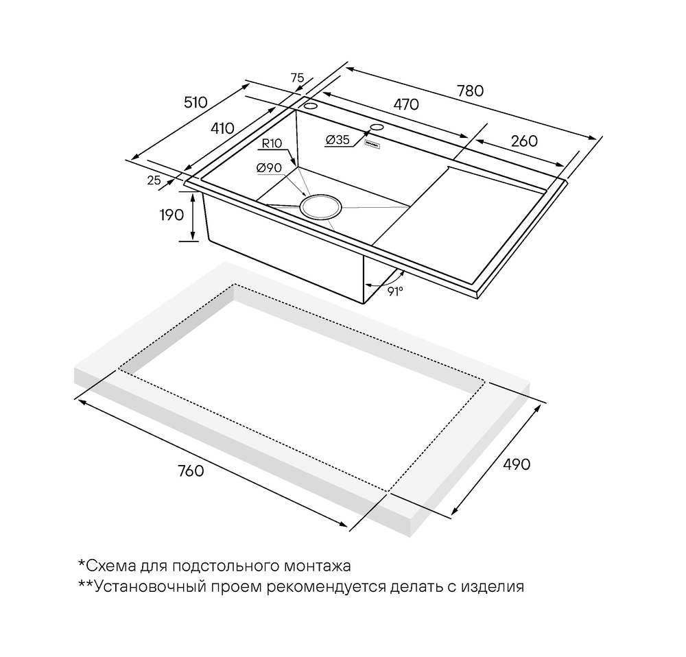 Наличие и расположение крыла кухонной мойки — слева, справа или с обеих сторон. Крыло оборачиваемой мойки можно расположить с любой стороны.