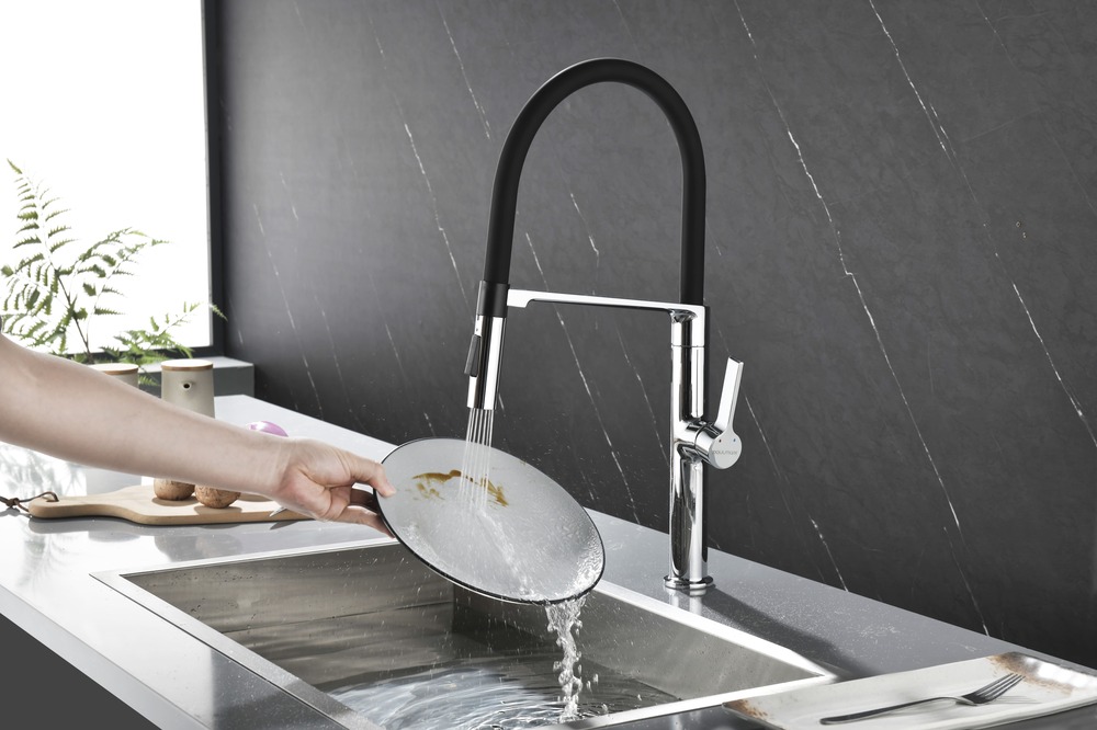 смеситель для кухни, латунь, высокий поворотный гибкий излив, хром