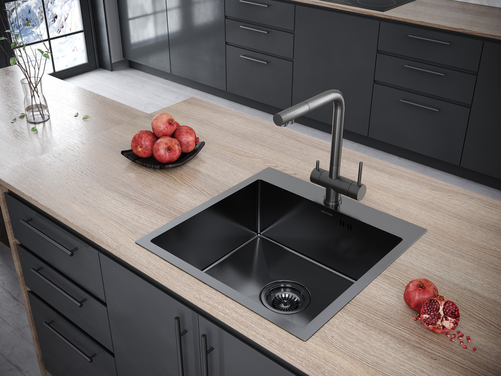 мойка, нержавеющая сталь PVD, 590х510 мм, вороненая сталь