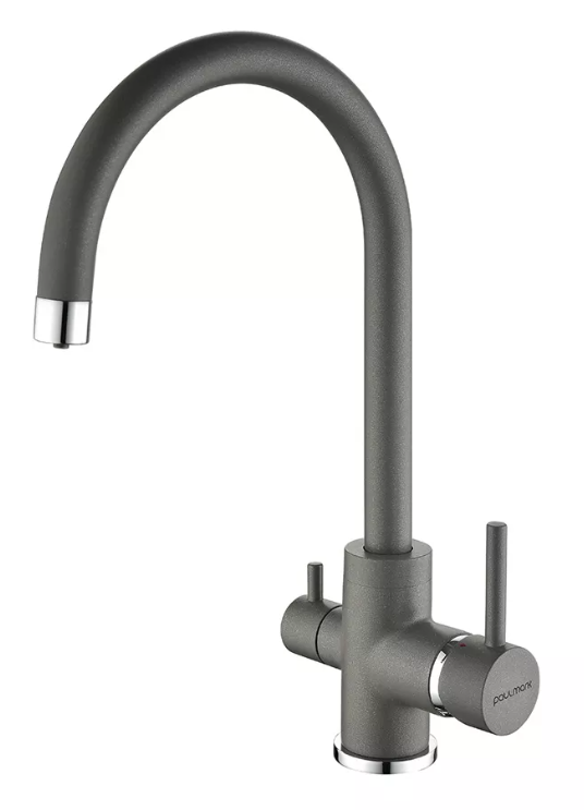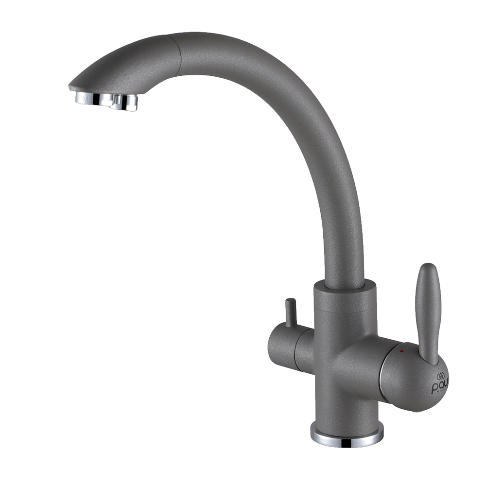 смеситель для кухни, латунь, дополнительный излив для фильтрованной воды, серый металлик