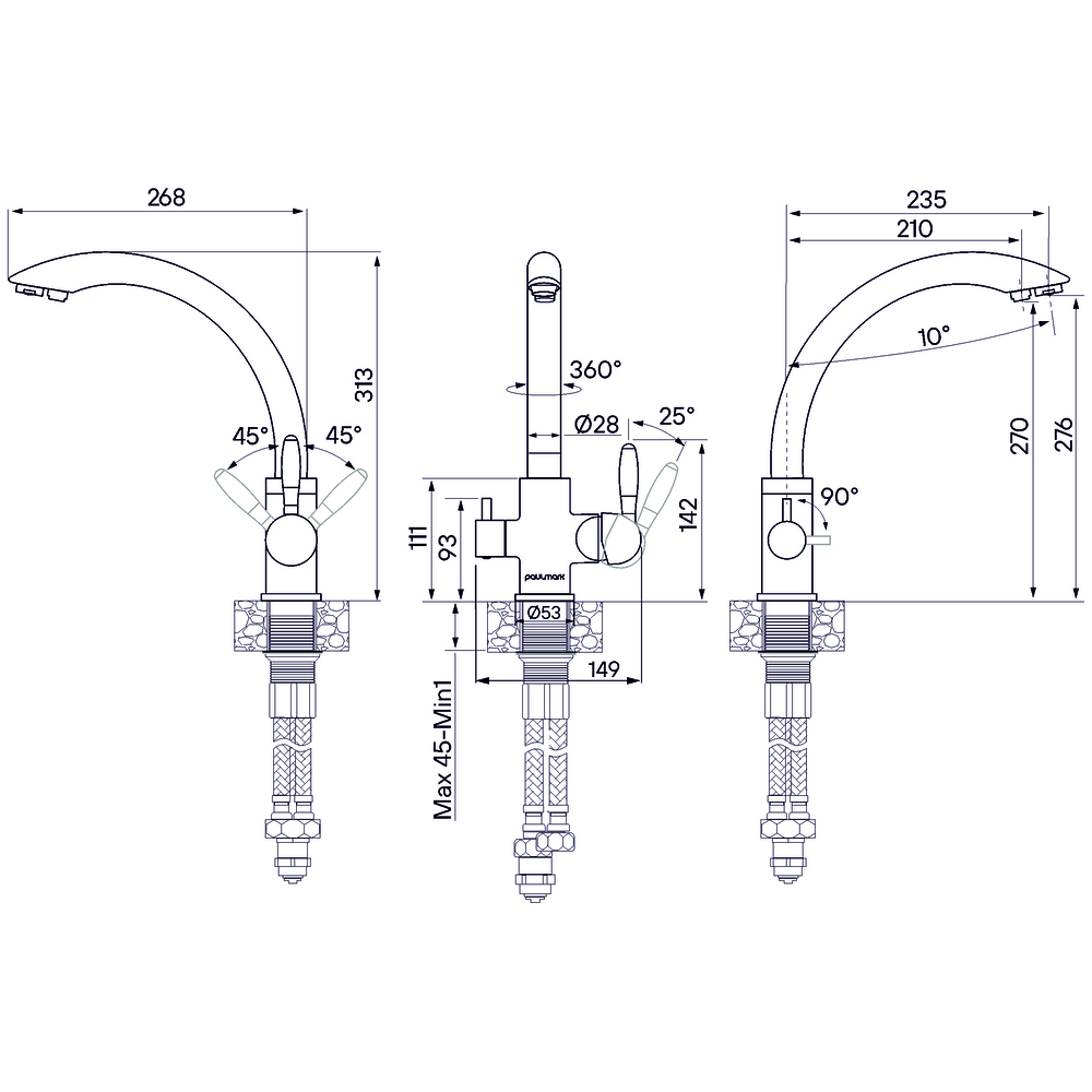 Paulmark ESSEN, смеситель, гранит, серый металлик Смеситель «под гранит»
