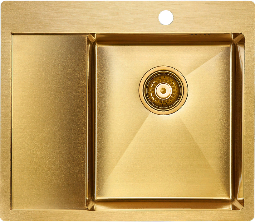 мойка, нержавеющая сталь PVD, 590х510 мм, брашированное золото, правая