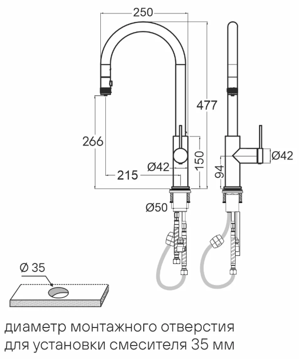 Встроенная в кран насадка на длинном гибком шланге с металлической оплеткой. Насадки с кнопкой могут переключать обычный излив воды на душ.