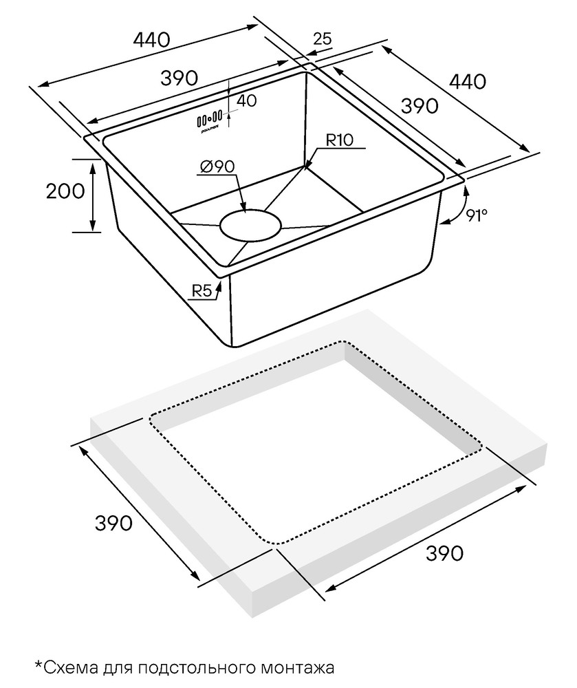 Paulmark GERBERG 44 UNI, мойка, нержавеющая сталь брашированная Мойка из нержавеющей стали