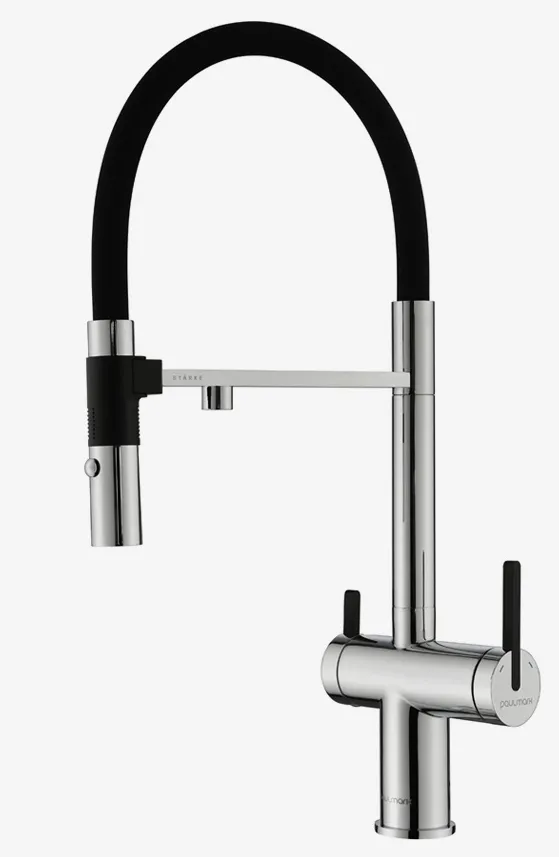 Paulmark GRAVITY, смеситель, хром, черный шланг Смеситель из металла