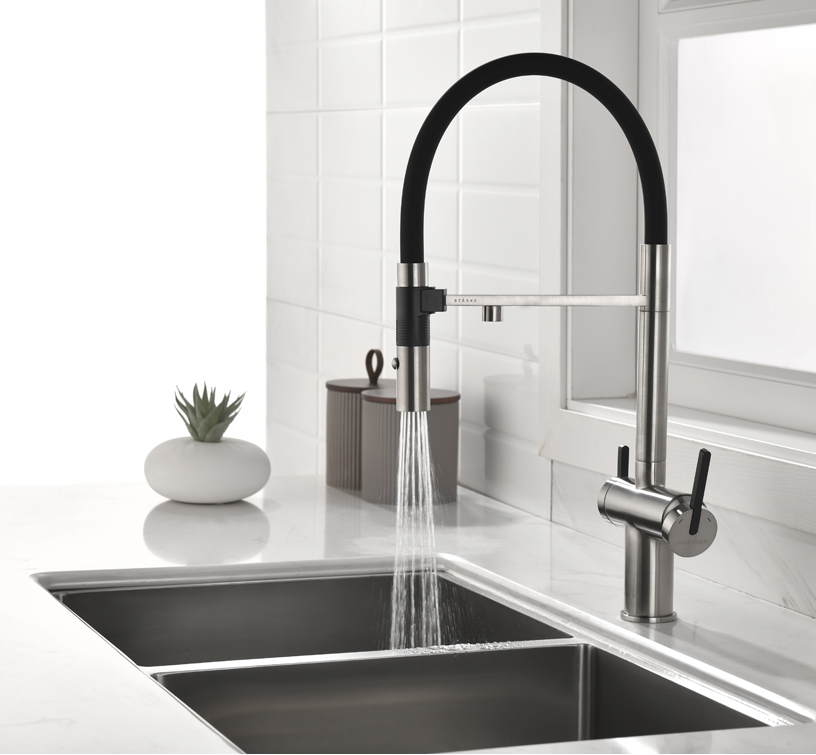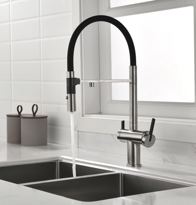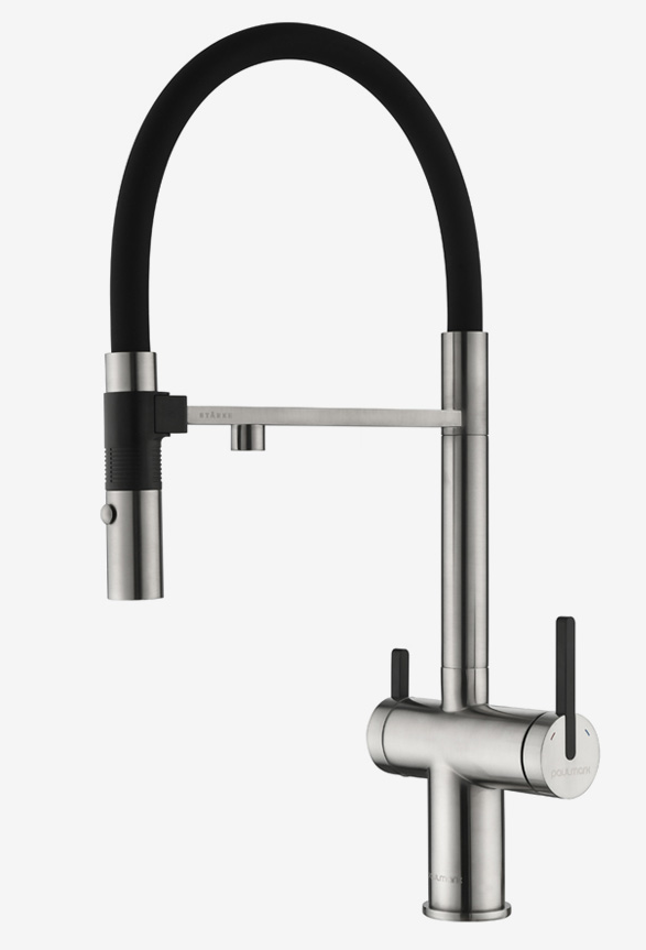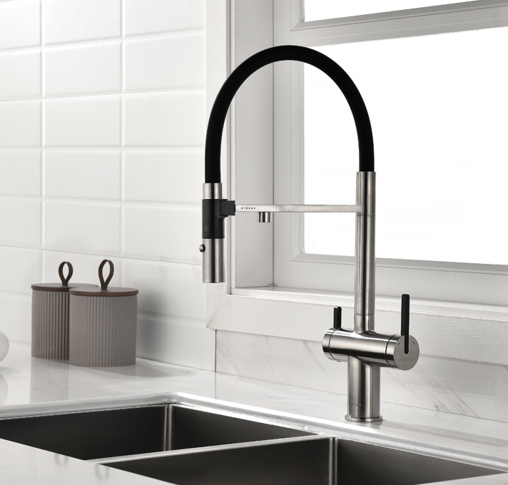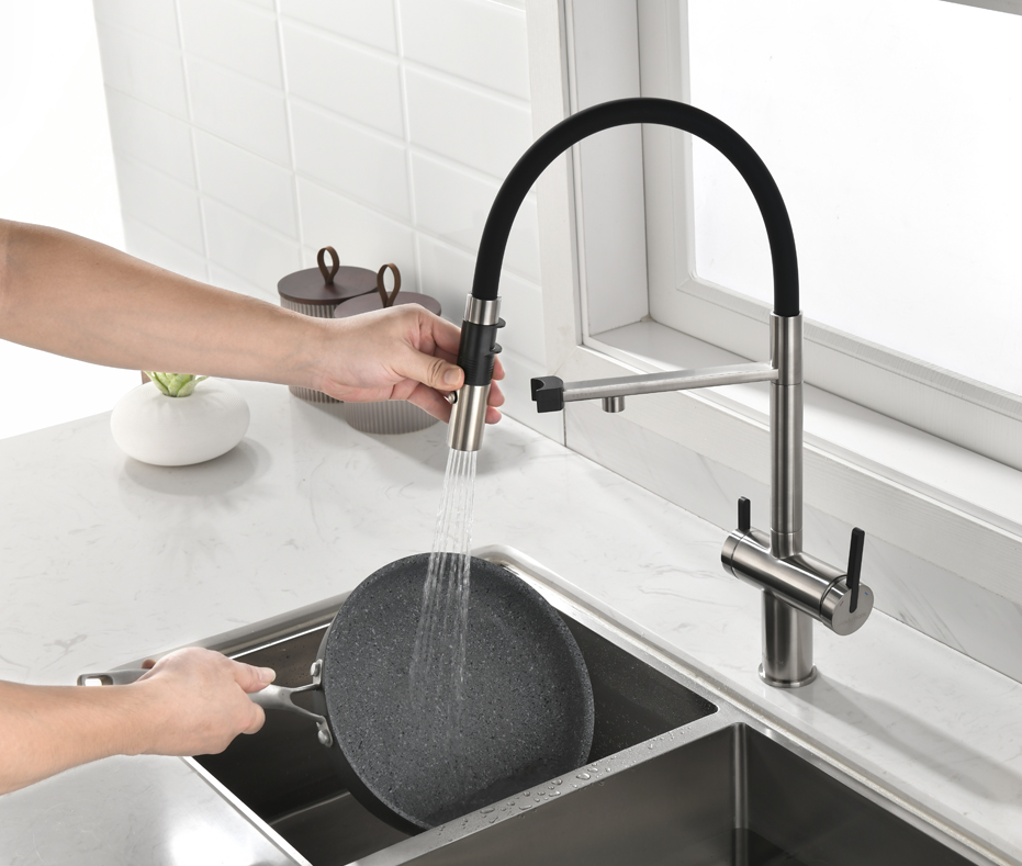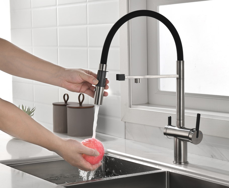 смеситель для кухни, латунь, дополнительный излив для фильтрованной воды, никель, черный шланг