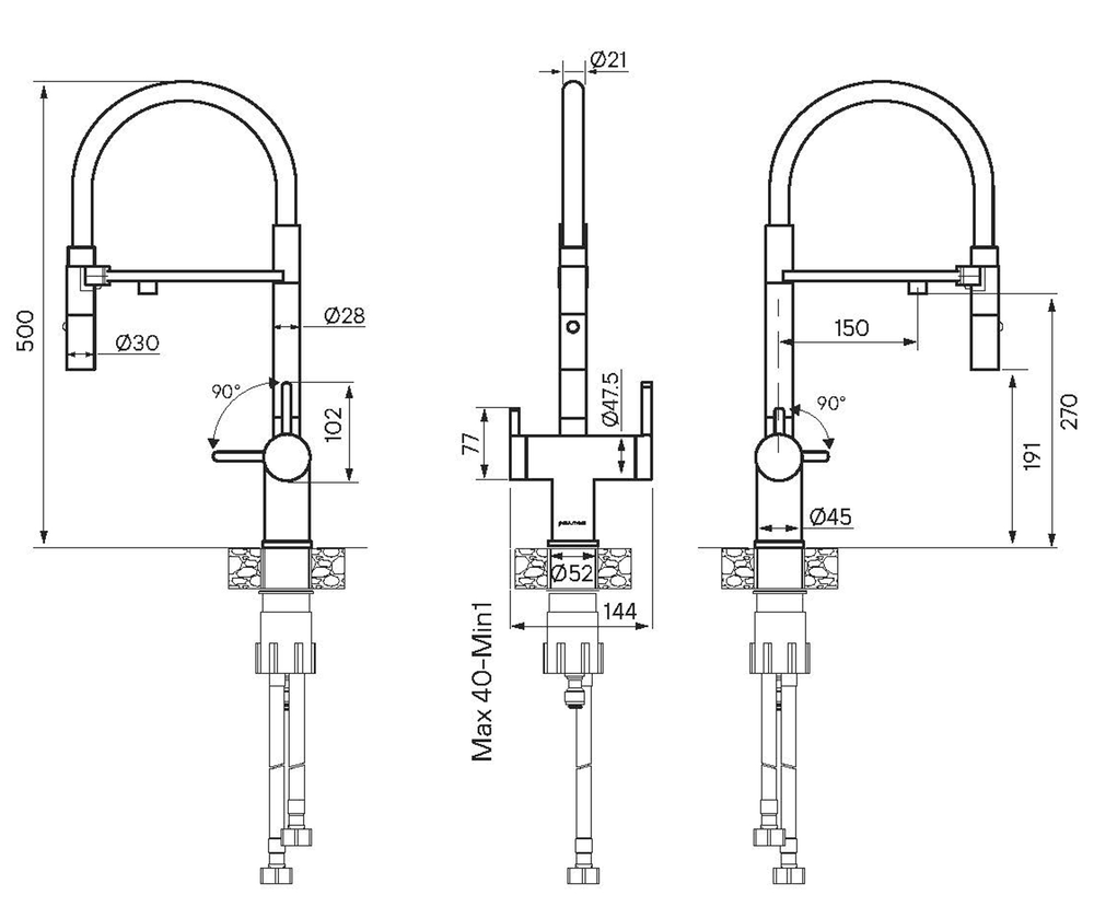 Paulmark GRAVITY, смеситель, никель, черный шланг
