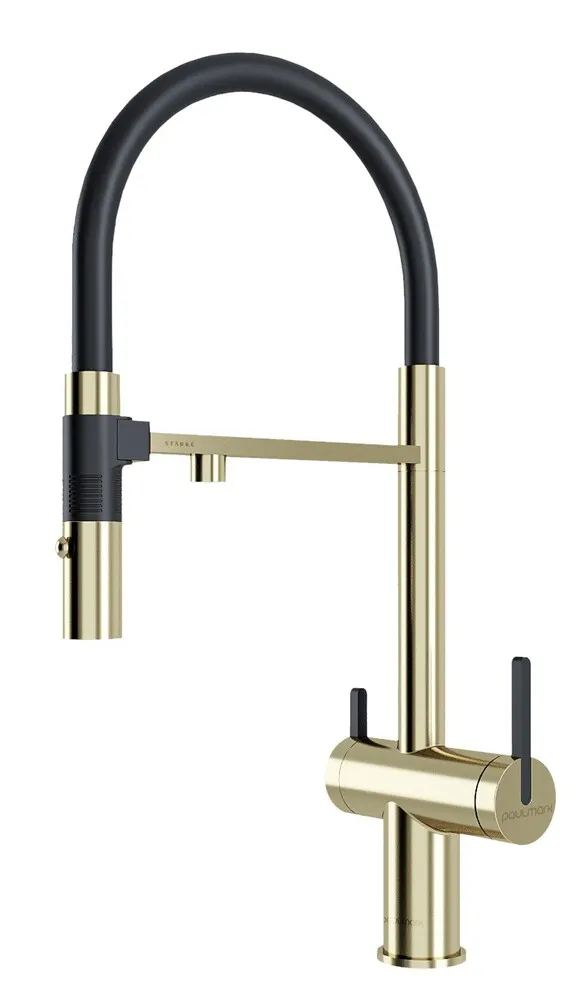 Paulmark GRAVITY, смеситель, светлое золото, черный шланг Смеситель из металла
