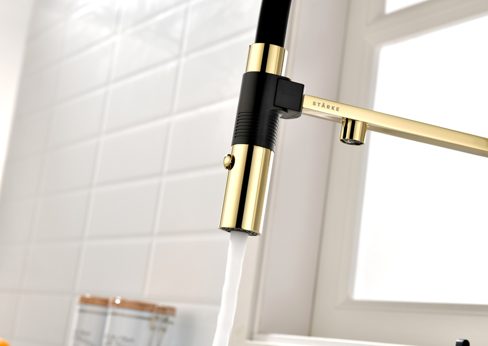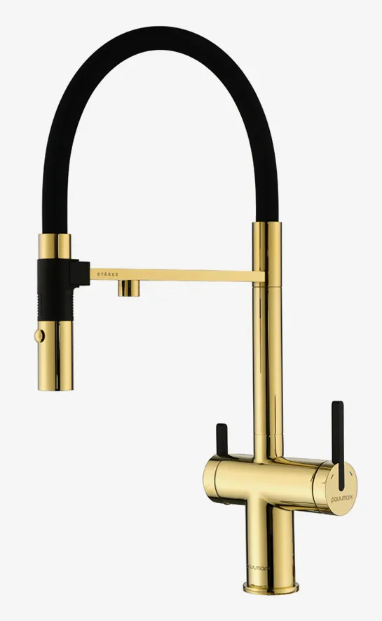 Paulmark GRAVITY, смеситель, золото, черный шланг