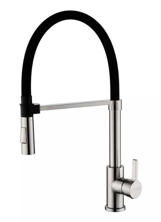 смеситель для кухни, латунь, высокий поворотный гибкий излив, брашированная сталь