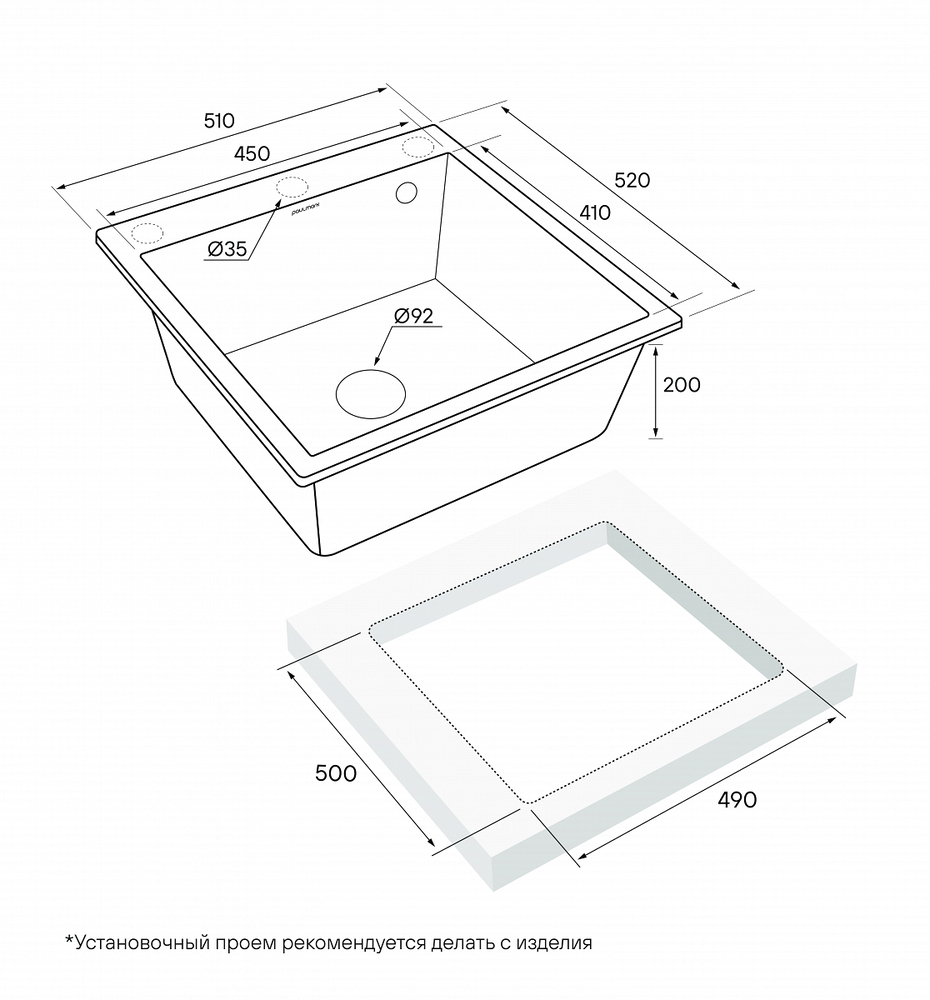 Paulmark KANTE 50, мойка, гранит, антрацит