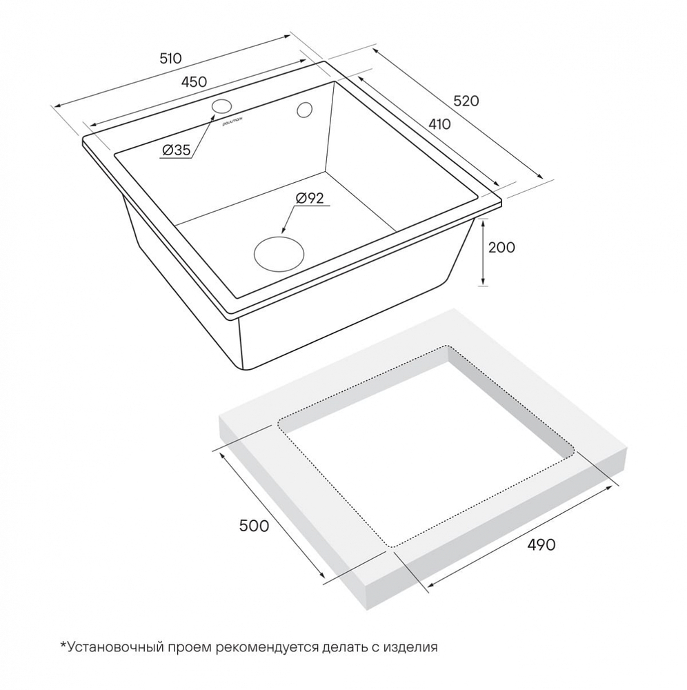 Paulmark KANTE 50, мойка, гранит, черный металлик Мойка гранитная