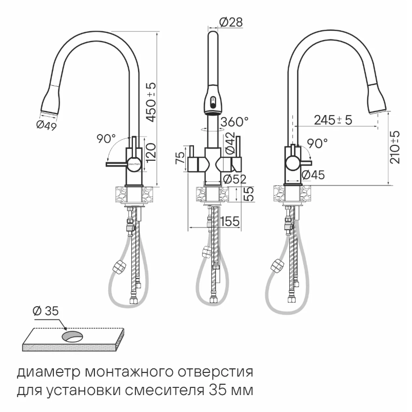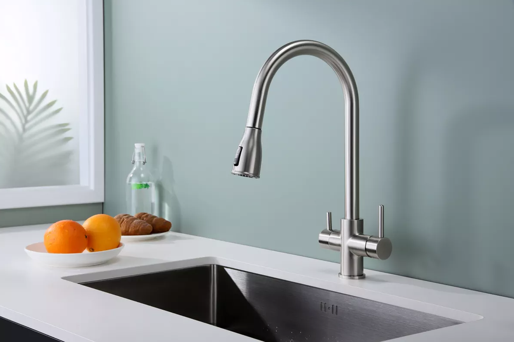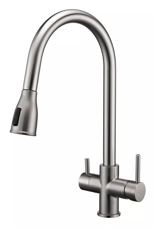 смеситель для кухни, латунь, дополнительный излив для фильтрованной воды, брашированная сталь