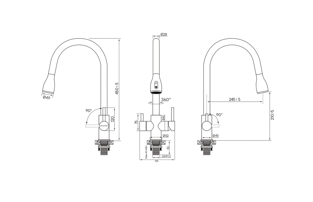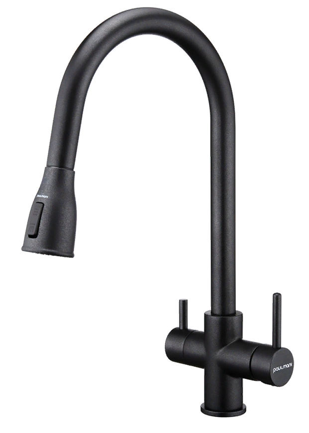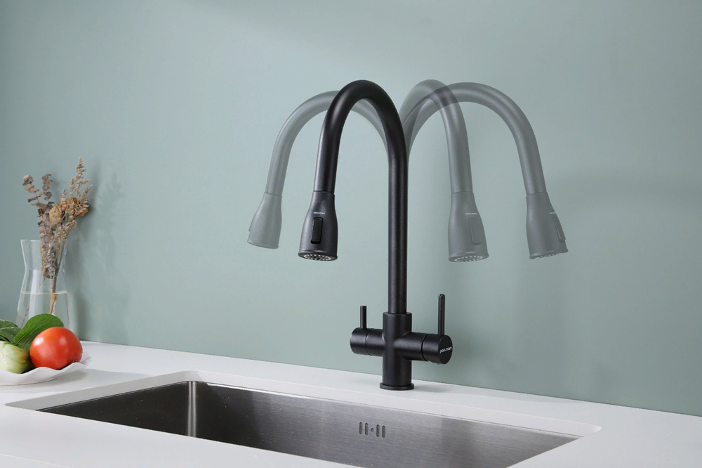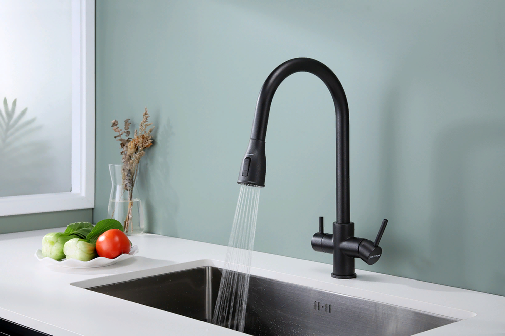 смеситель для кухни, латунь, дополнительный излив для фильтрованной воды, черный металлик