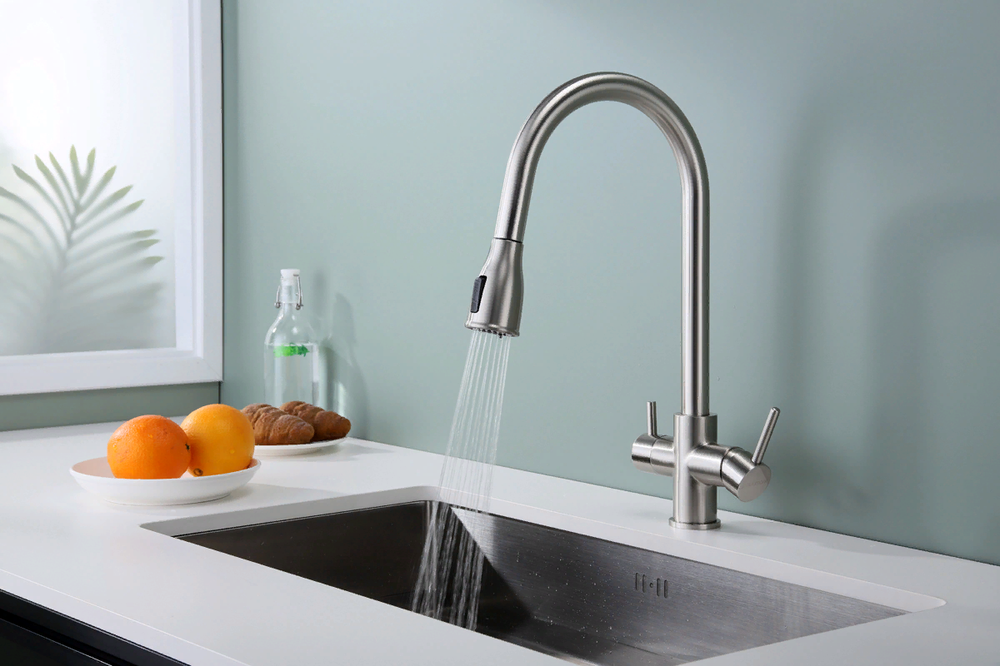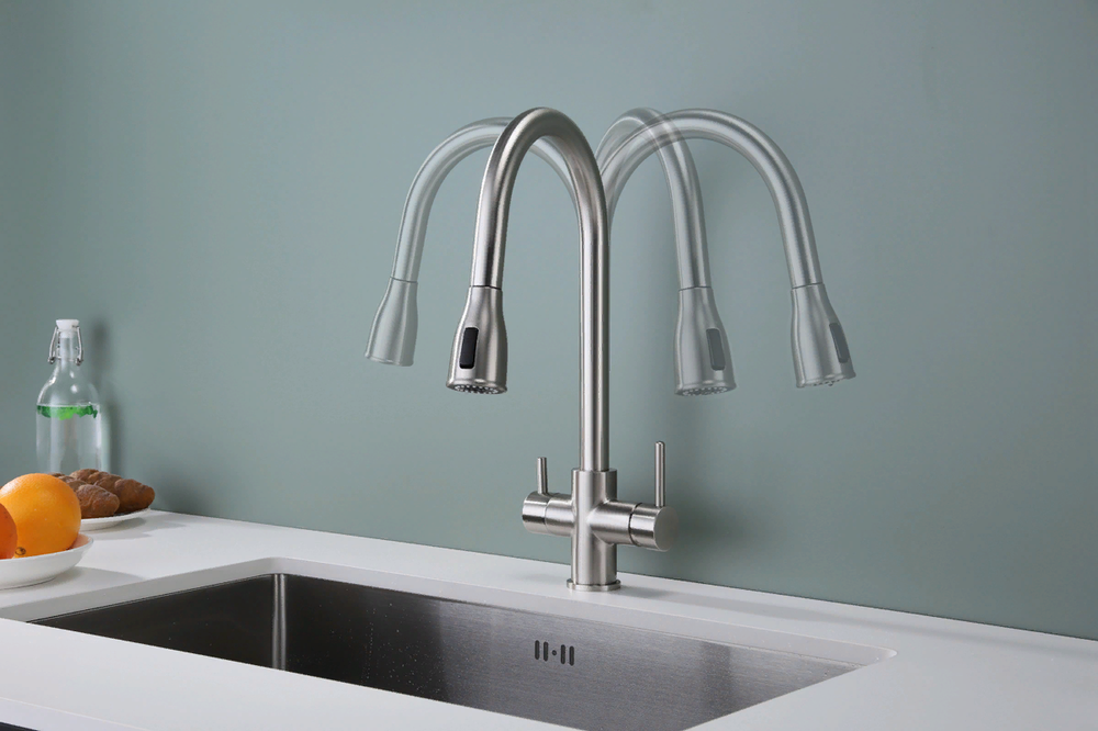 смеситель для кухни, латунь, дополнительный излив для фильтрованной воды, никель