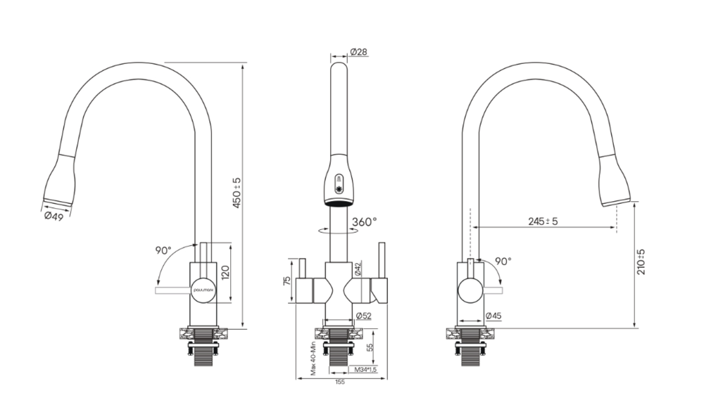 Paulmark LANGE, смеситель, светлое брашированное золото Смеситель из металла