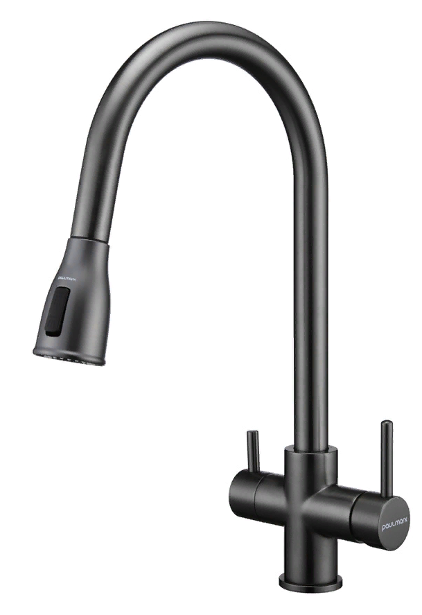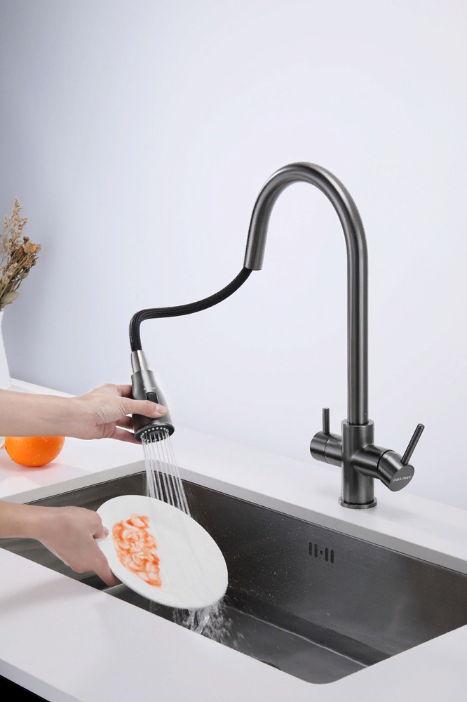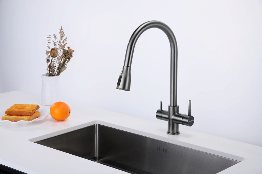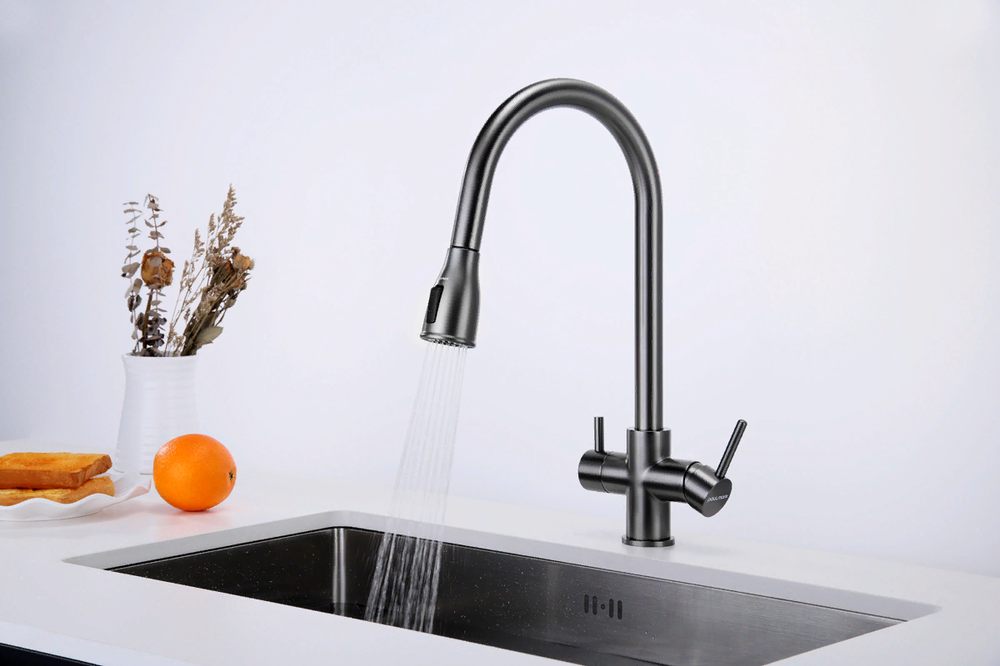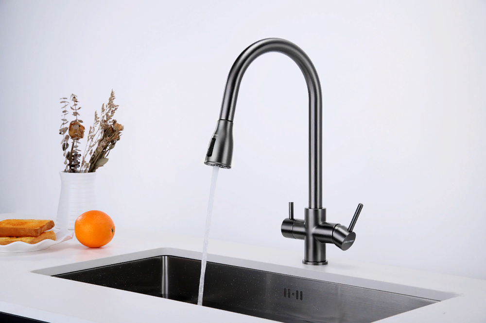 смеситель для кухни, латунь, дополнительный излив для фильтрованной воды, вороненая сталь