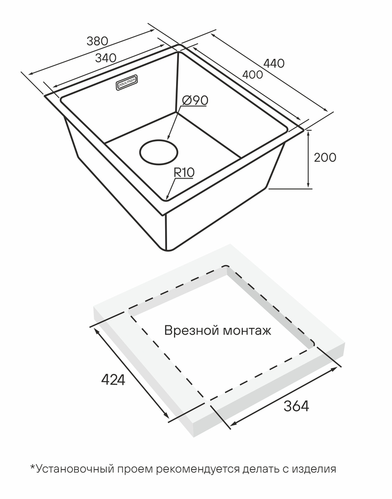 мойка, нержавеющая сталь, 380х440 мм, нержавеющая сталь брашированная