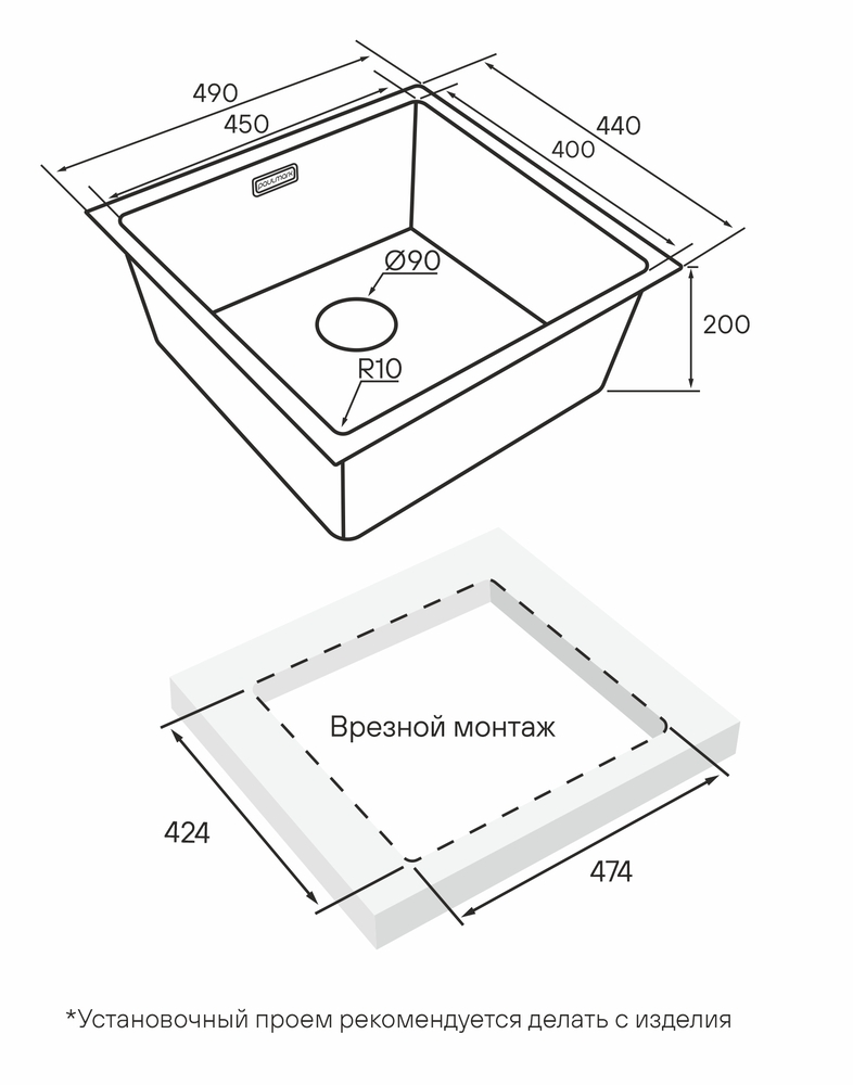 Paulmark LASSAN 49 UNI, мойка, нержавеющая сталь, вороненая сталь Мойка из нержавеющей стали