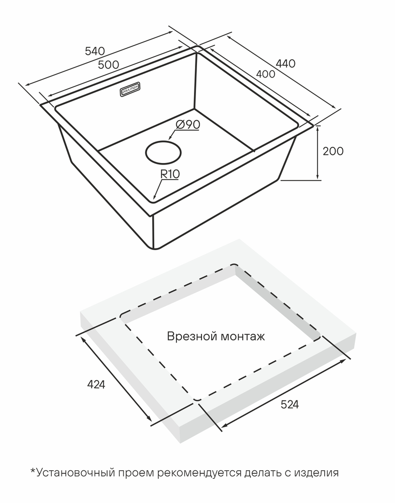 мойка, нержавеющая сталь, 540х440 мм, нержавеющая сталь брашированная