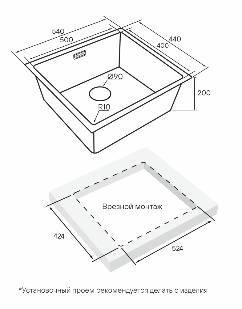 мойка, нержавеющая сталь, 540х440 мм, светлое золото