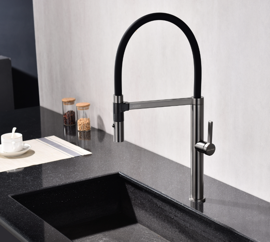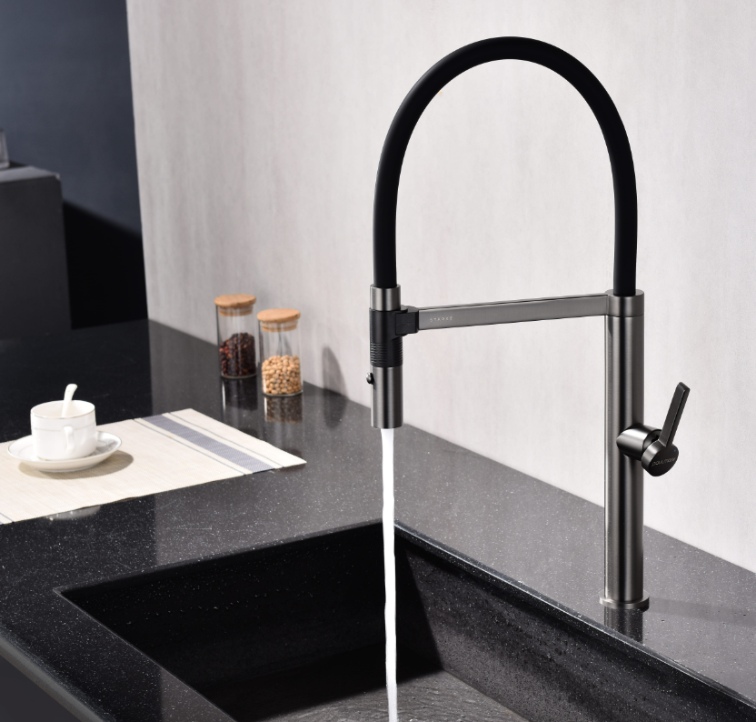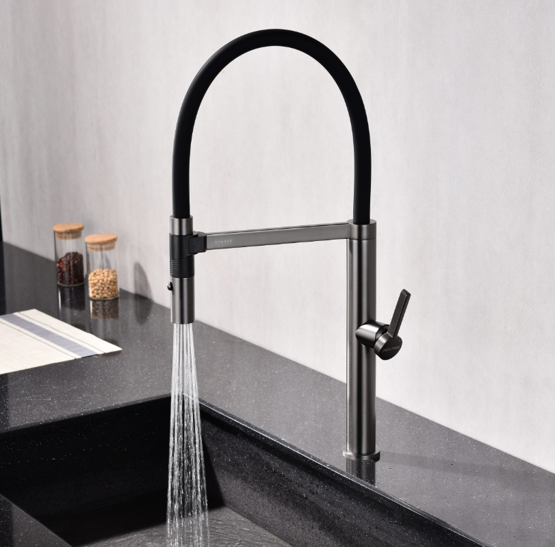 смеситель для кухни, латунь, высокий поворотный гибкий излив, беретта