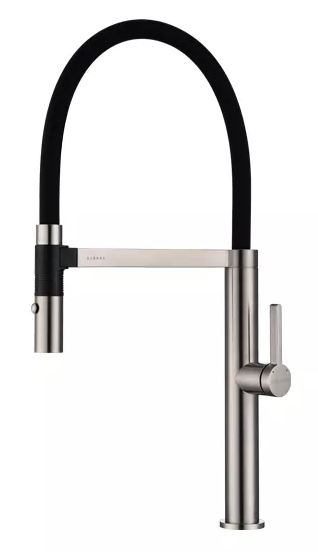 смеситель для кухни, латунь, высокий поворотный гибкий излив, брашированная сталь