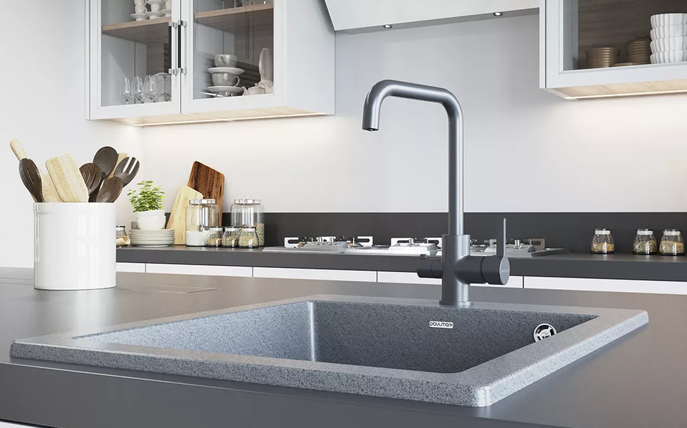 смеситель для кухни, латунь, дополнительный излив для фильтрованной воды, серый металлик