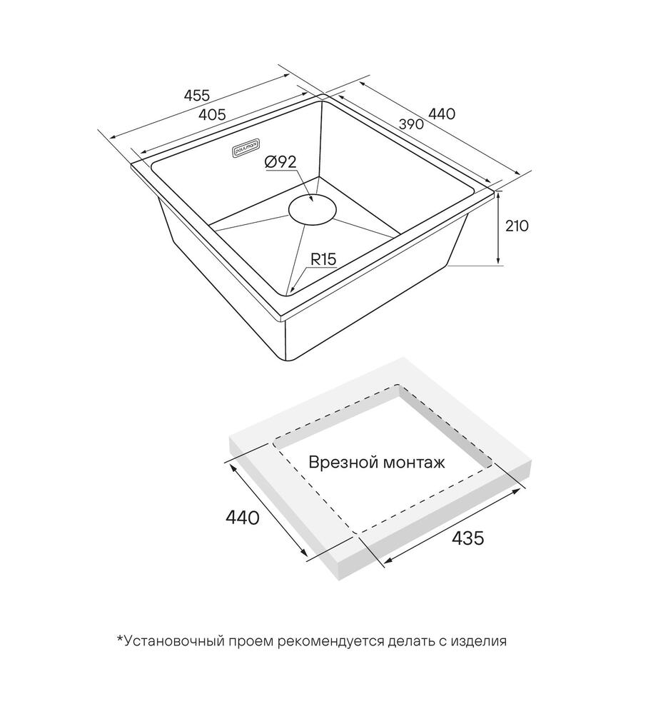 Расстояние от дна до верхней кромки чаши мойки. Оптимальная глубина — 15-18 см. Чем глубже мойка, тем меньше брызг попадет наружу.