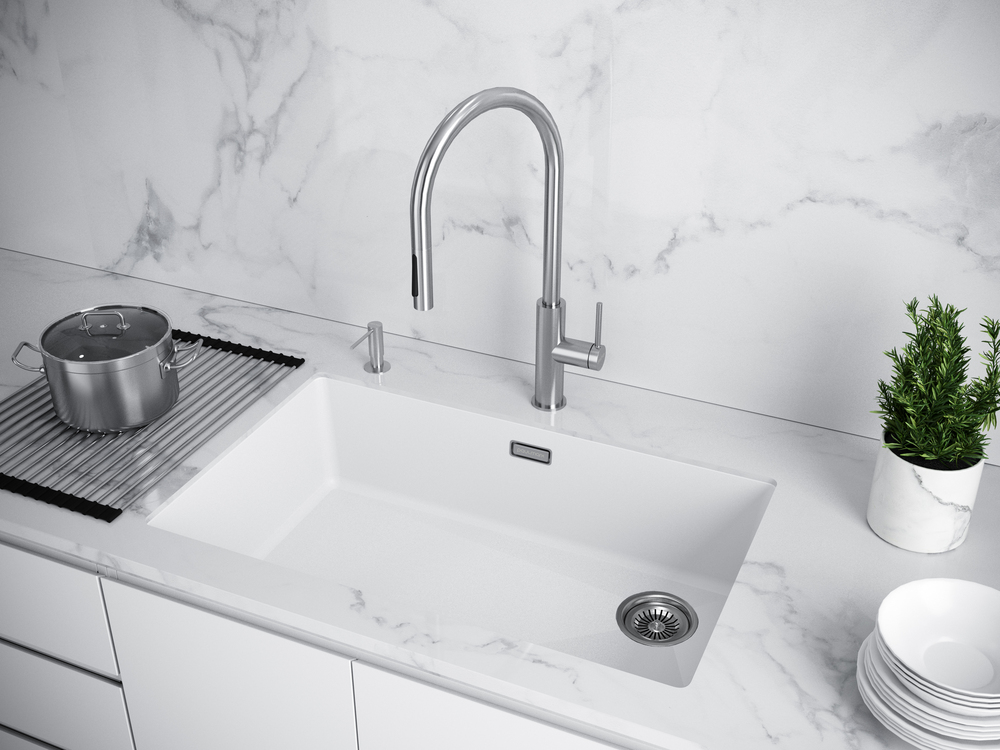 Paulmark LUMI 74UNI-SKEW, мойка, гранит, белый