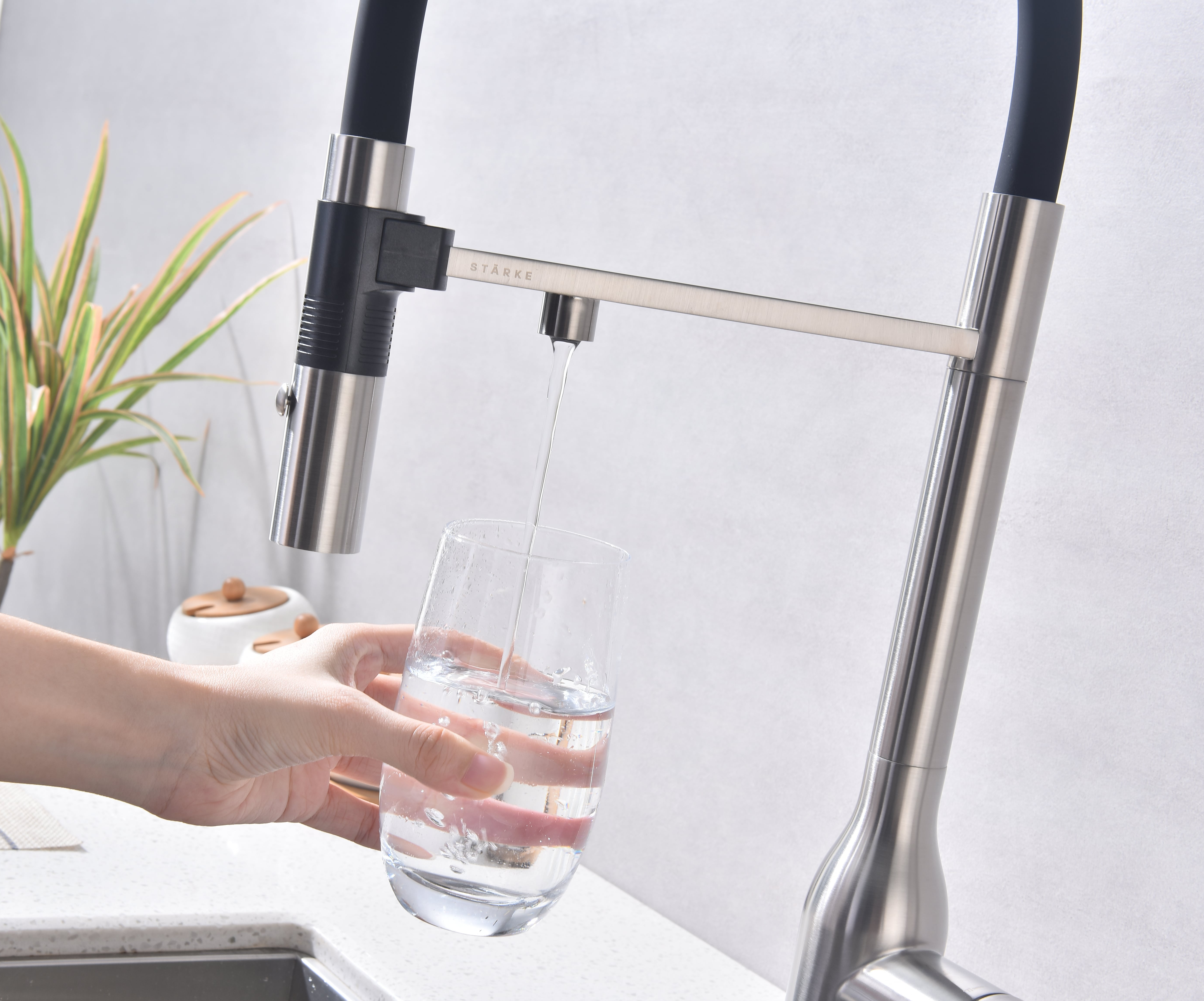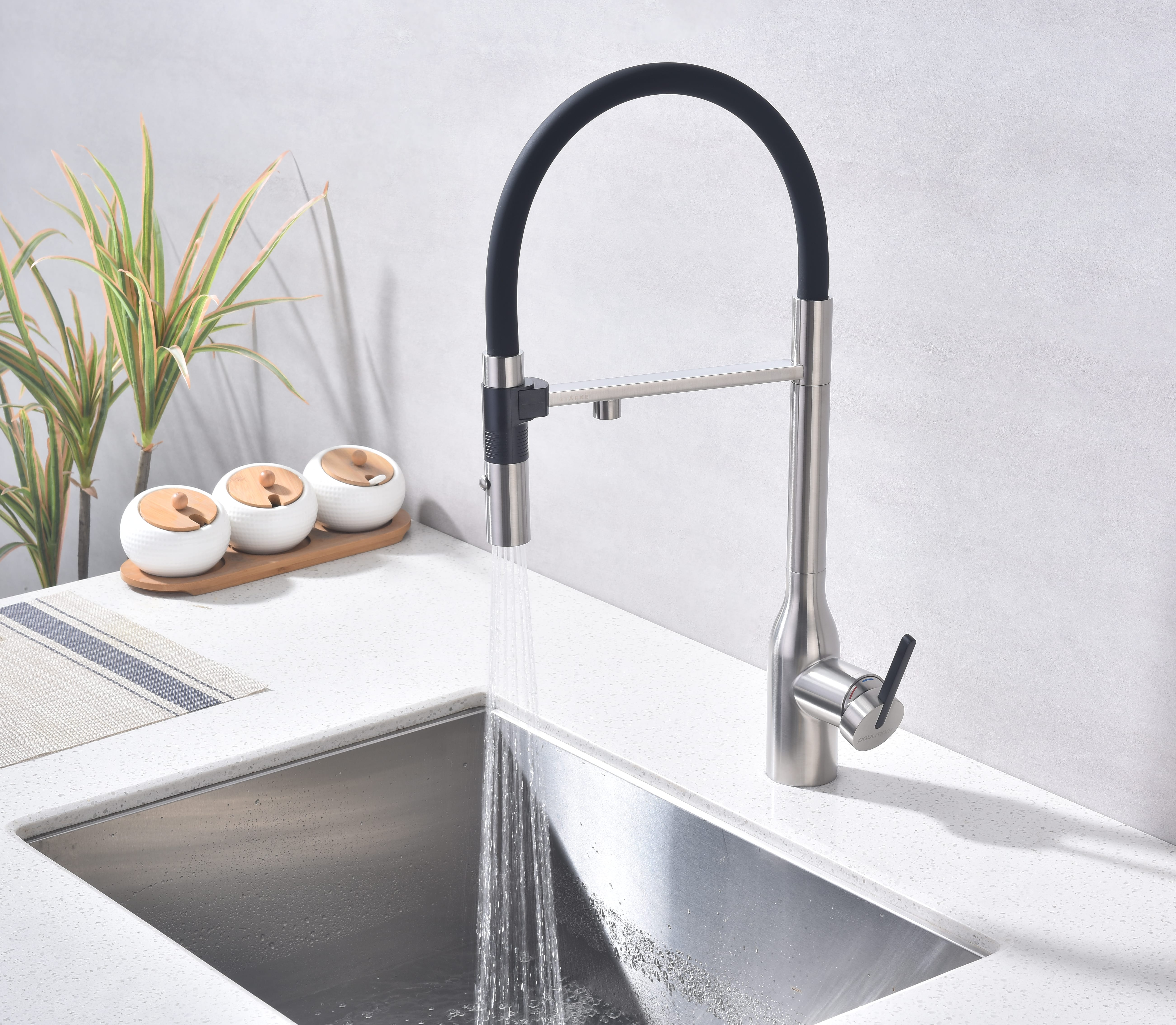 смеситель для кухни, латунь, дополнительный излив для фильтрованной воды, брашированная сталь