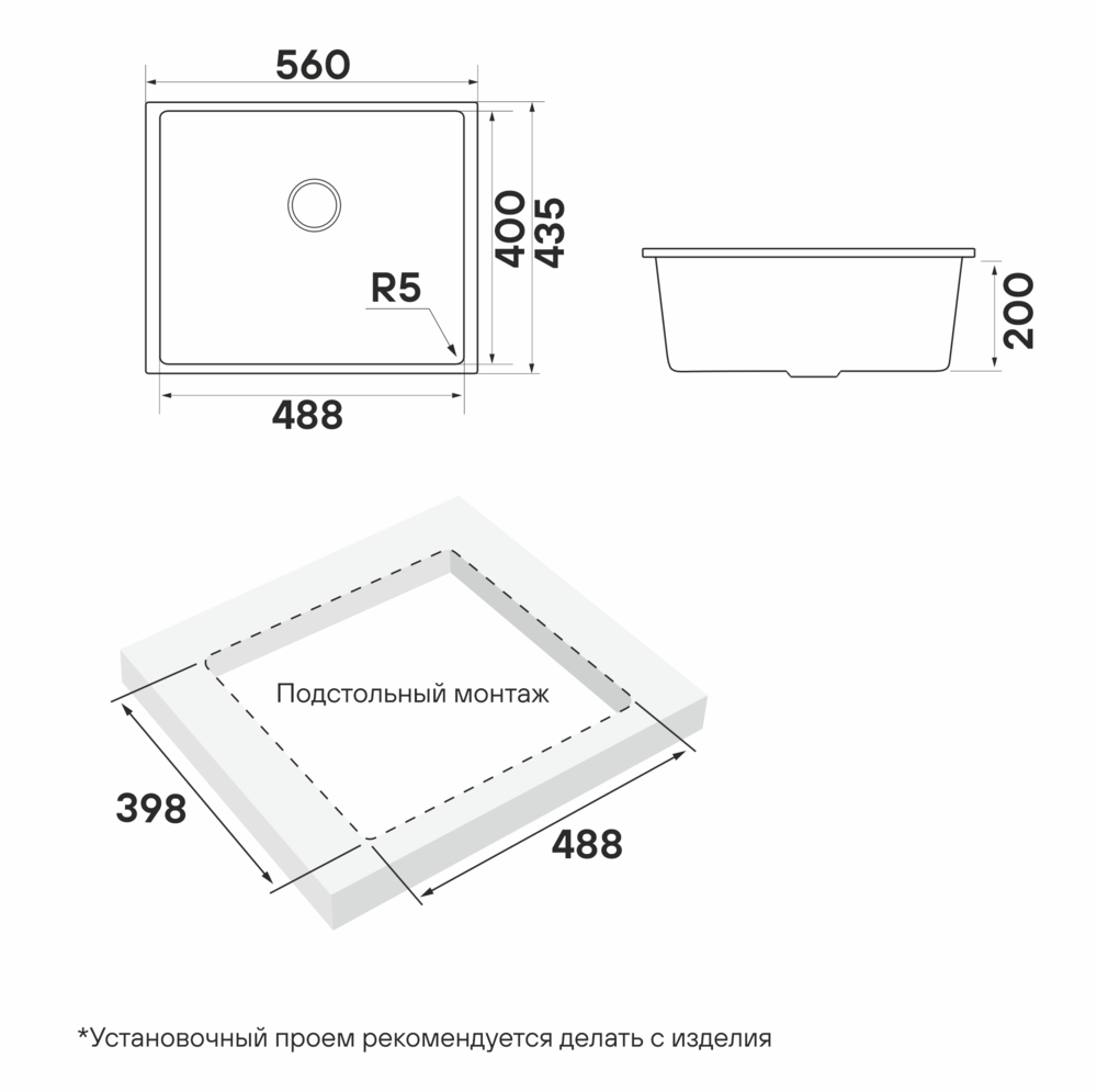 Paulmark NEO CLASSIC 56, мойка, гранит, антрацит Мойка гранитная