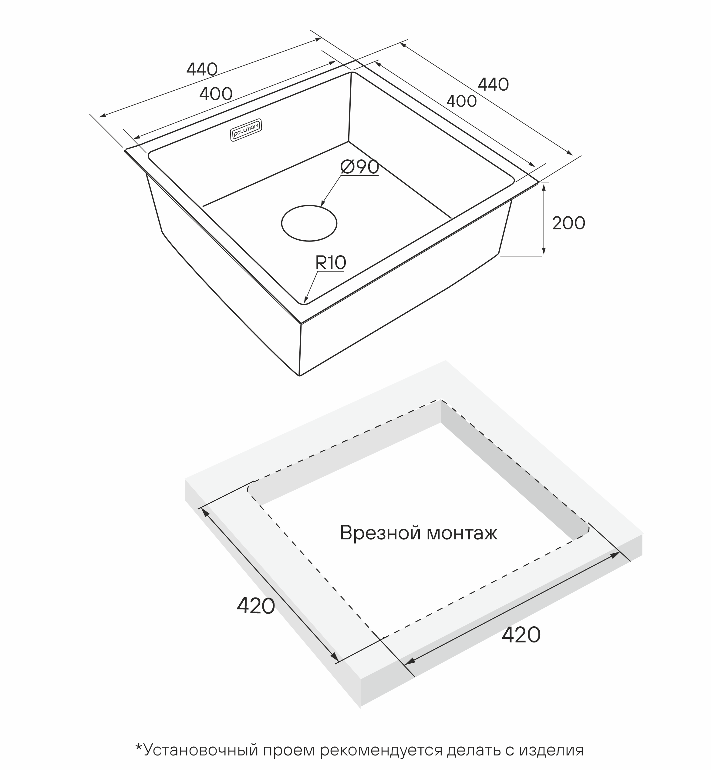 мойка, нержавеющая сталь, 440х440 мм, нержавеющая сталь брашированная