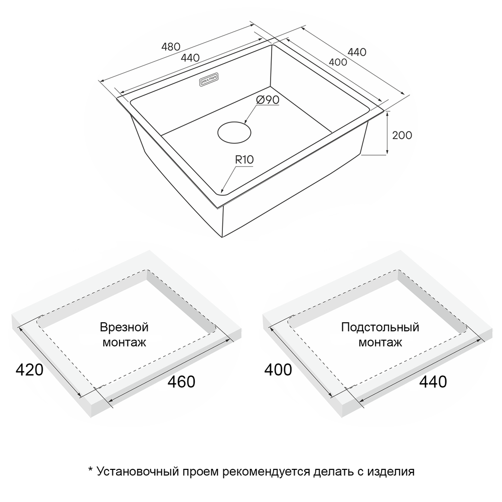 мойка, нержавеющая сталь, 480х440 мм, вороненая сталь