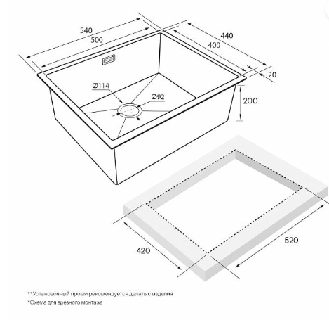Расстояние от дна до верхней кромки чаши мойки. Оптимальная глубина — 15-18 см. Чем глубже мойка, тем меньше брызг попадет наружу.