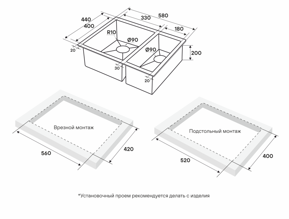 Определяет расположение крыла мойки. Выбирая вариант исполнения мойки, нужно учитывать особенности кухонного гарнитура.
