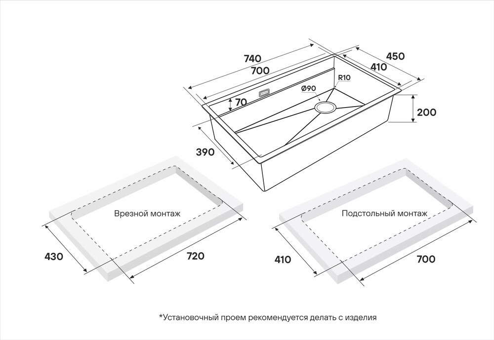 Paulmark NEXT-PRO 74 UNI, мойка, нержавеющая сталь, вороненая сталь Мойка из нержавеющей стали