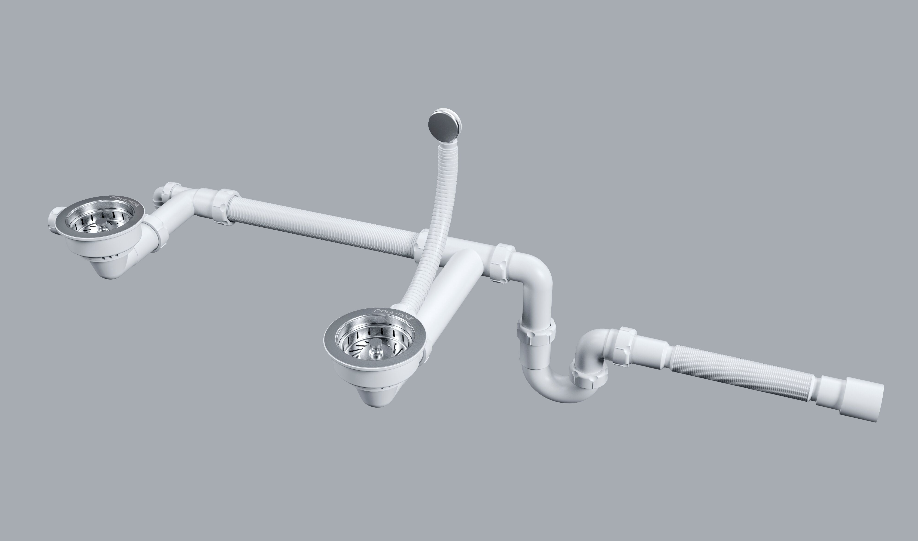Paulmark PM1023-CR, сифон телескопический двойной с круглым переливом, хром