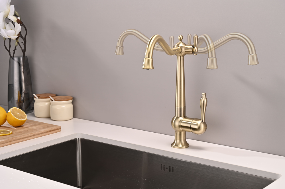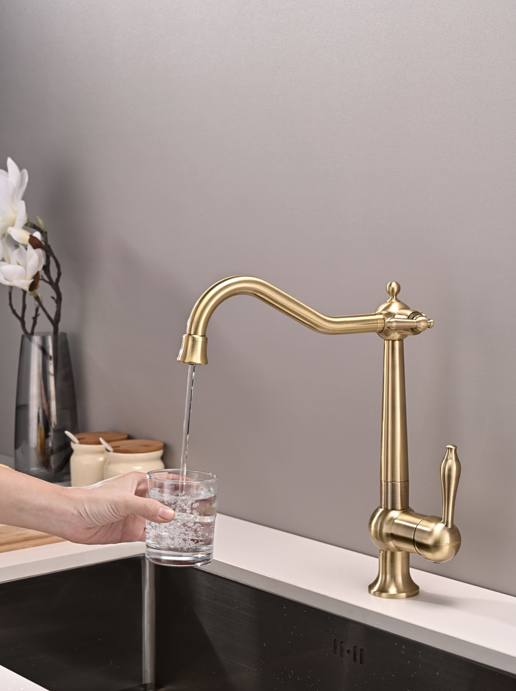 смеситель для кухни, латунь, дополнительный излив для фильтрованной воды, бронза