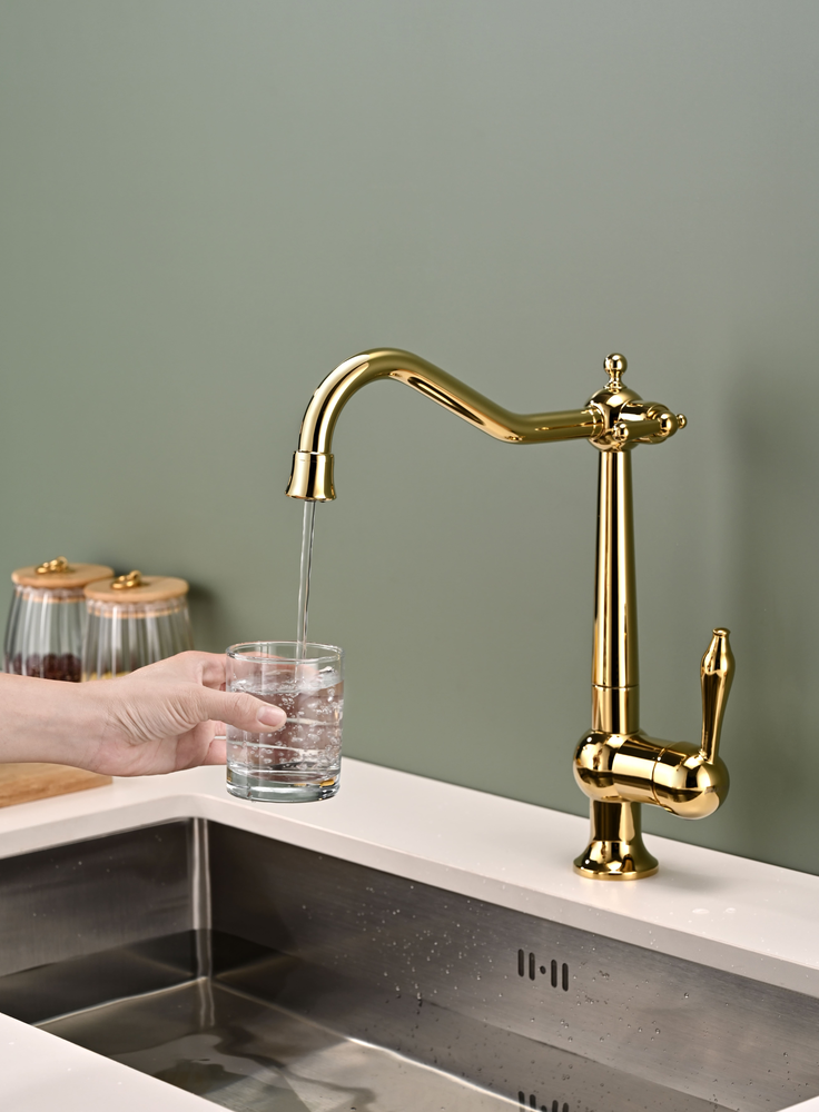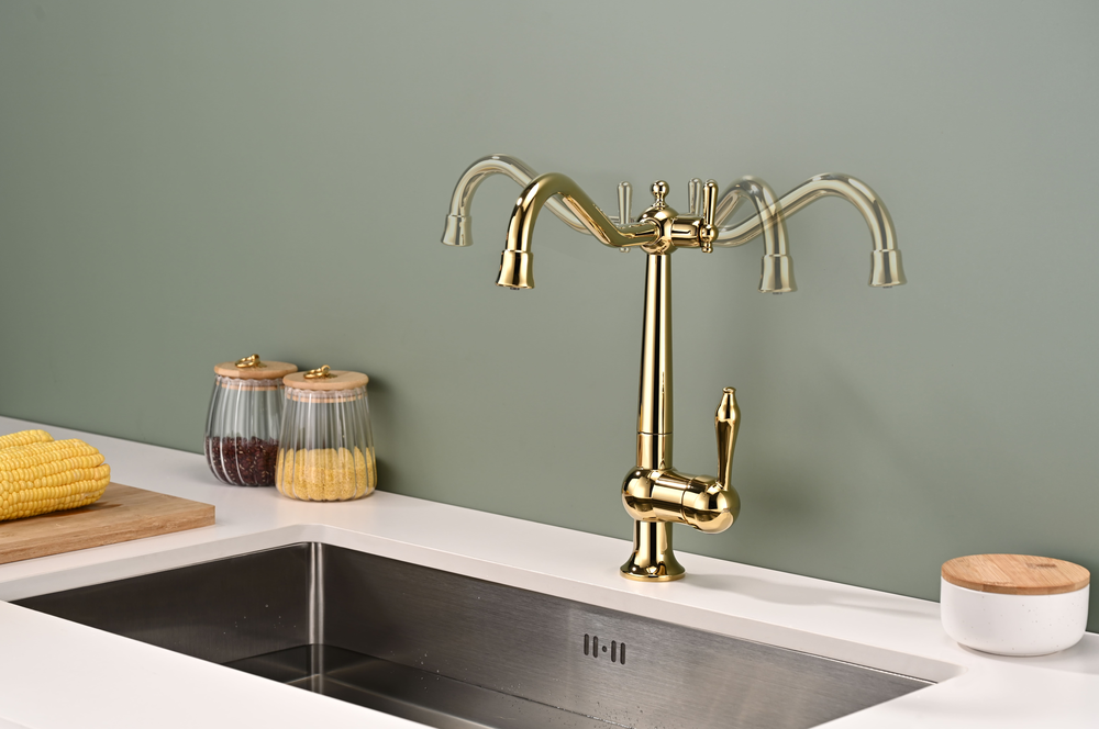смеситель для кухни, латунь, дополнительный излив для фильтрованной воды, золото